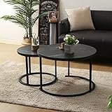 BIGTREE Juego de 2 mesas auxiliares redondas de madera, mesa de café moderna para sala de estar, juego de mesas auxiliares laterales con marco de metal para sala de estar, balcón, oficina (negro)
