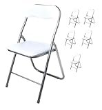 - PACK 6 SILLAS PLEGABLES BLANCAS, de piel sintetica y estructura de metal, ideales para utilizar como asientos auxiliares en cualquier estancia y para celebraciones, congresos, asociaciones, clubs. etc.