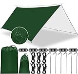 - Impermeable & anti-UV: la lona para acampar está hecha de tela de poliéster ripstop 210T que es resistente a las rasgaduras y a los pinchazos, con un recubrimiento de 2500 PU y el tratamiento impermeable en las costuras, la lona para acampar es completamente impermeable y anti uv, podría ofrecer una larga duración -protección y te mantiene seco en el clima lluvioso, y también protege tu piel de los rayos UV en los días soleados.